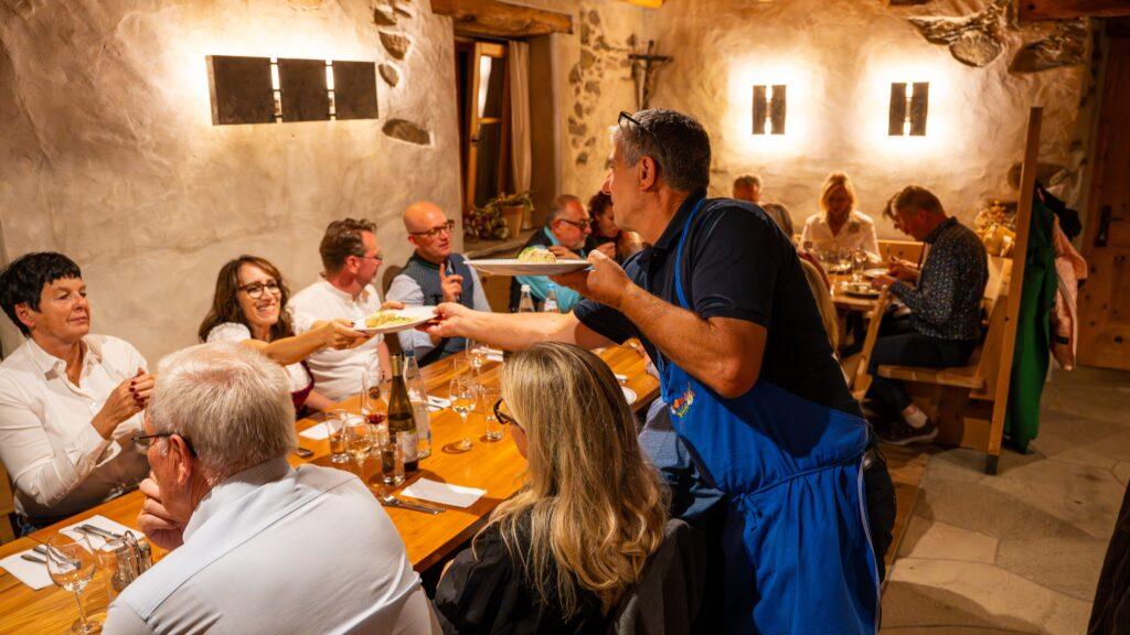 Am Nachmittag führt uns die Strecke rund um die Geislergruppe zurück Richtung Hotel. Dort bleibt Zeit, um zu entspannen oder den Blick über die Berglandschaft schweifen zu lassen. Am frühen Abend brechen wir gemeinsam zu einem historischen Hof auf, um das Südtiroler Törggelen zu erleben – eine herbstliche Tradition, die Genuss, Geselligkeit und regionale Kultur auf ganz natürliche Weise verbindet.