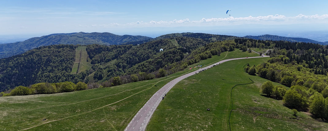 Im Anschluss geht es auf legendären Straßen durch spektakuläre Mittelgebirgslandschaften. Wir fahren auf der oberen Vogesenkammstraße wieder Richtung Süden, Die Strecke heißt unter Motorfreunden 'Kurvenkarussel' und führt uns in den Naturpark 'Ballons des Vosges' in Richtung der 'Perle der Vogesen*.