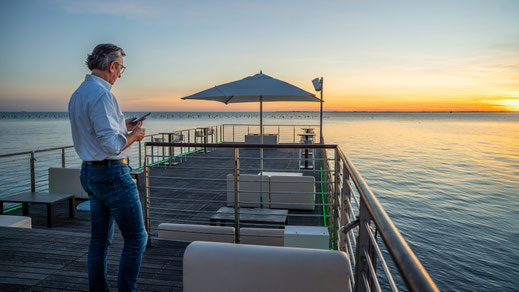 Noch erfüllt von den Eindrücken und Geschmäckern dieses außergewöhnlichen Lunches führt uns die Nachmittagsroute weiter nach Süden durch die Karstregion bis in die italienische Region Friaul. Im eleganten 5-Sterne Hotel Tivoli Portopiccolo Wellness Resort & Spa direkt am Meer., lassen wir den Tag stilvoll mit Sundowner, Fingerfood und Drinks im Beachclub ausklingen, während die Sonne über der Adria versinkt.
