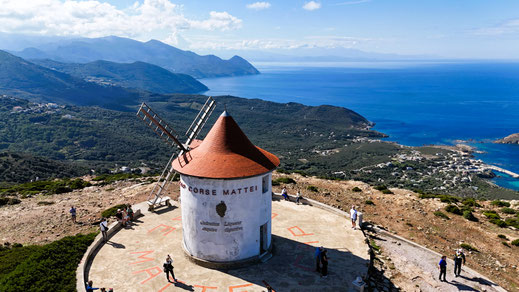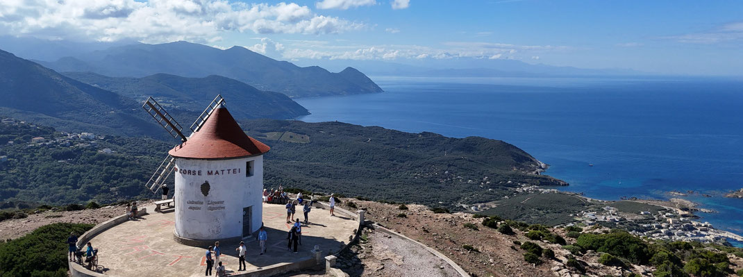 Die Route schlängelt sich durch kleine Dörfer, vorbei an duftender Macchia und spektakulären Ausblicken auf das Mittelmeer. In Macinaggio parken wir direkt im Hafen und genießen das maritime Flair, bevor wir zur Moulin de Mattei hinauffahren. Von hier eröffnet sich einer der schönsten Panoramablicke der Insel – das Meer, die Küstenlinie und das wilde Herz Korsikas zu unseren Füßen. Zu Mittag kehren wir in Centuri, dem größten Hafen am Cap, ein. In einer charmanten Location direkt am Wasser genießen wir ein Mittagessen voller regionaler Aromen – frischer Fisch, feine Kräuter, korsischer Wein.